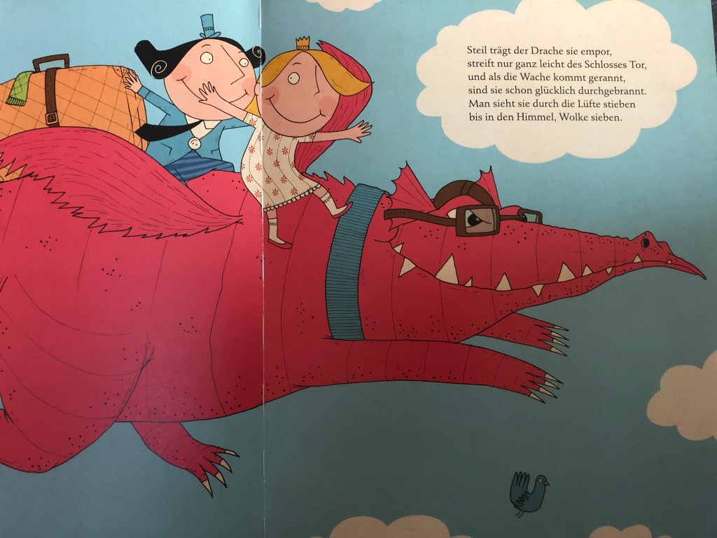 Das Buch hat alles, was eine gute (Vorlese-)Geschichte braucht! Es ist witzig und frech gezeichnet, nicht überladen und doch bunt! Und die Sprache – hach ja – die hat es mir angetan! 😉 „Nie im Leben!“ ist wirklich toll gereimt mit exquisiten und doch verständlichen Worten. Es lässt sich wunderbar rhythmisch vorlesen … die Worte traben quasi mit dem Prinzen dahin! Nicht zu viel Text pro Seite und doch genug, um den kleinen und großen Zuhörern genug Zeit zu geben, auch diverse Details auf den bunten Seiten zu erkennen.